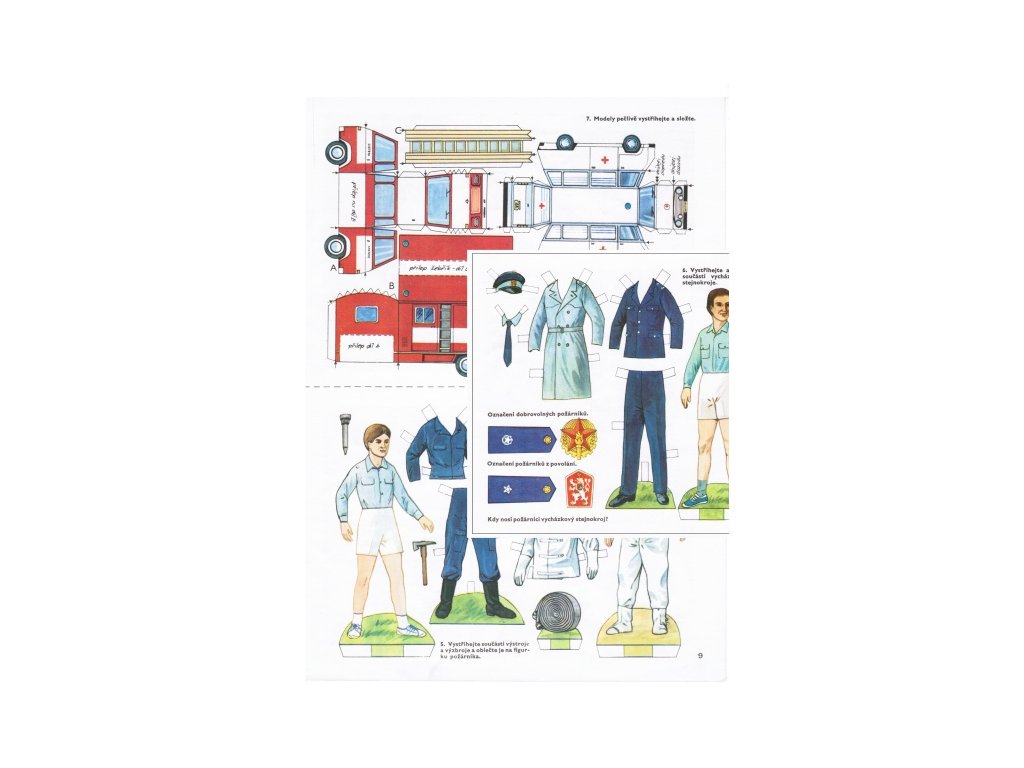 hasičský výjezdový automobil + dodávkový automobil + tři oblékací figurky