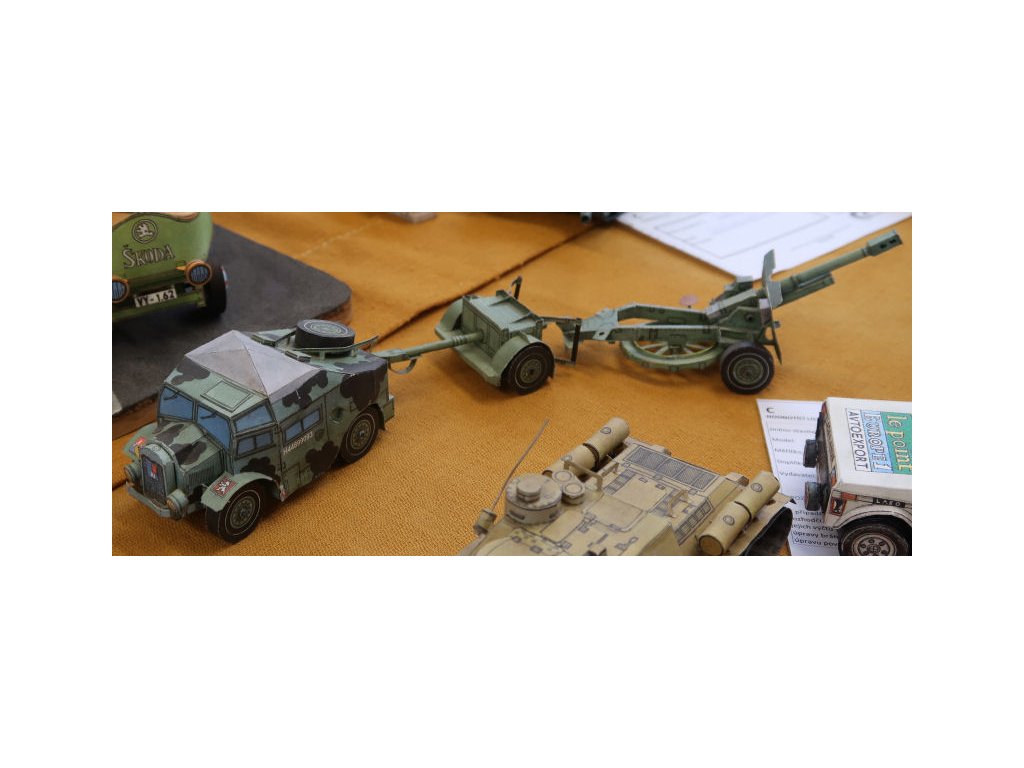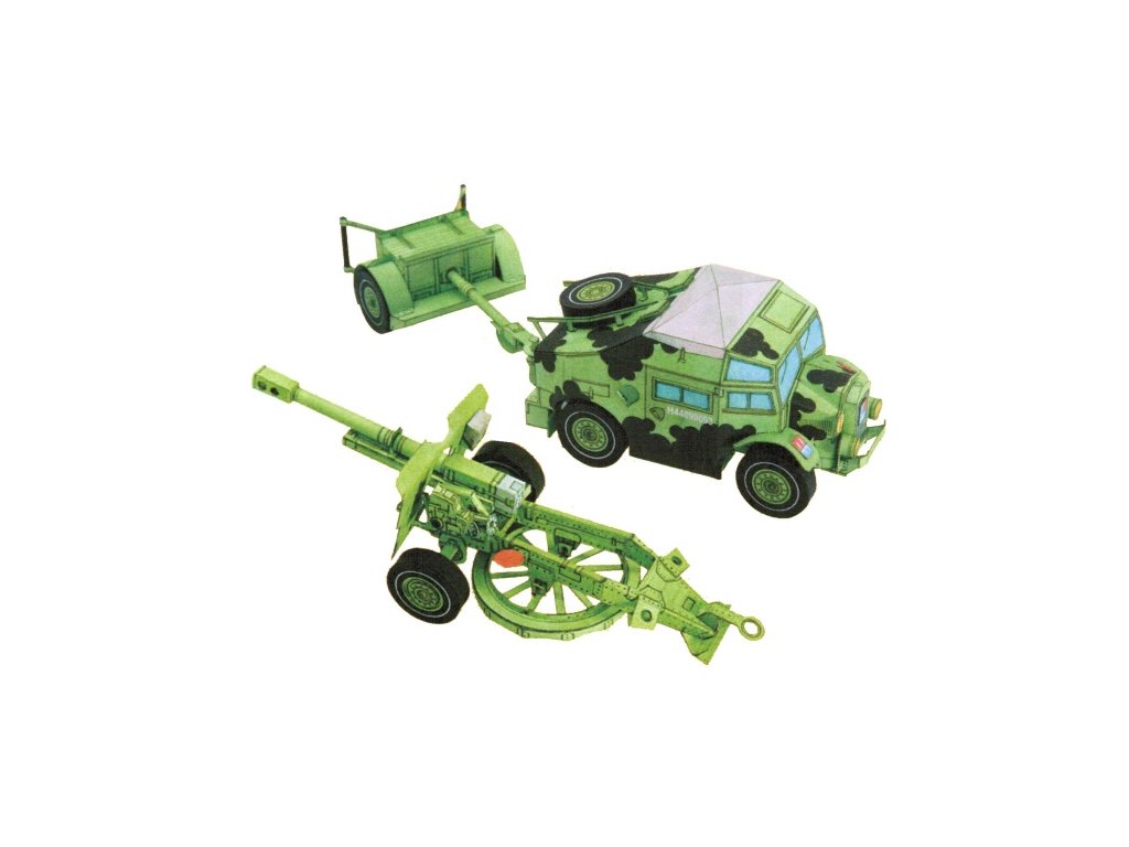 vojenský kolový tahač + dělostřelecký vozík + polní houfnice