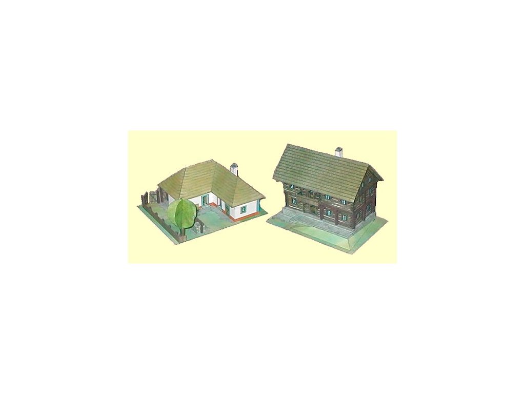 roubené stavení z Kokořínska + hliněný dům z jihovýchodní Moravy