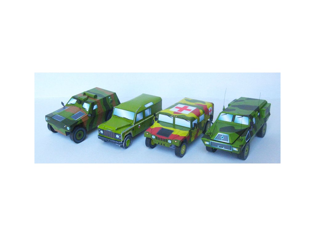Aligator - obrněný transportér, ACMAT - obrněný transportér, Land Rover - terénní automobil, Hummer - terénní automobil