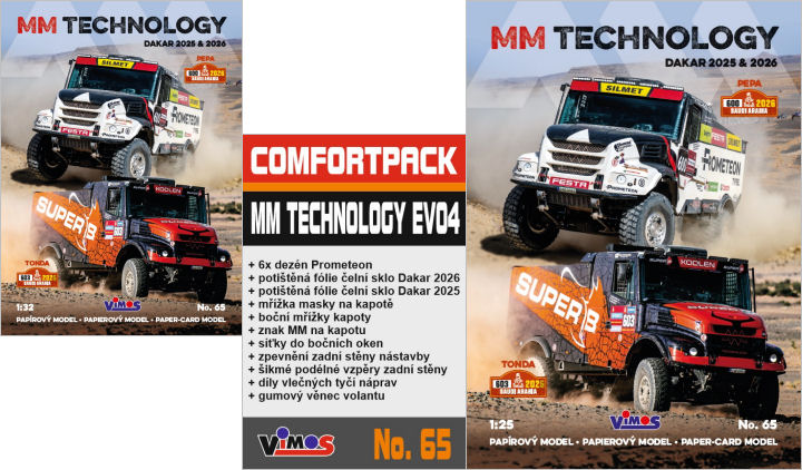 - MM Technology Evo 4 - Dakar 2025 "Pepa" #600 a Dakar 2026"Tonda" #603 v M 1:32 i 1:25 včetně ComfortPacků (sada doplňků)