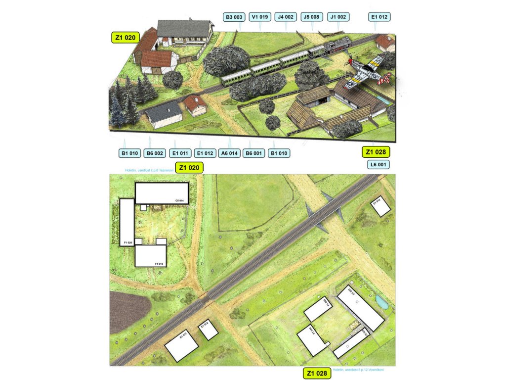 Sada neobsahuje: budovy sady Z1-020 (Holetín - usedlost čp. 6 - Teznerovi) a Z1-028 (Holetín - usedlost čp. 12 Vosmíkovi)!