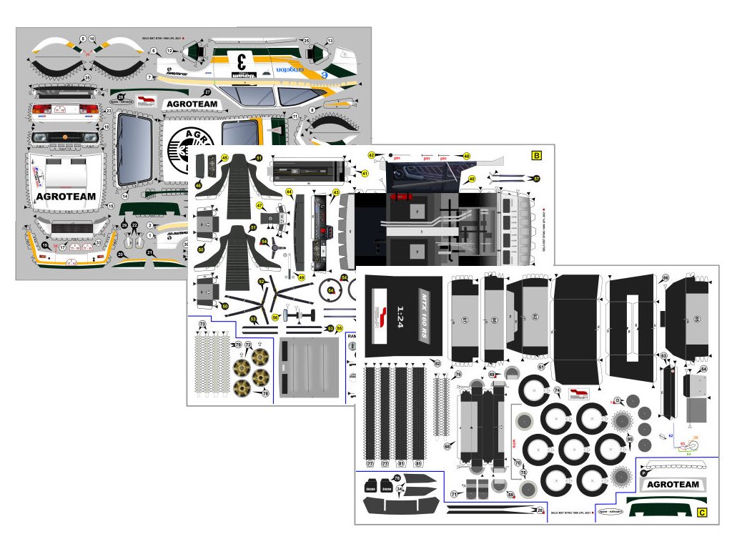 Model lze sestavit v jedné z několika verzí obtížnosti. Model lze volitelně sestavit s interiérem kabiny a tvarovanými koly, zatáčecí přední kola (upgrade).