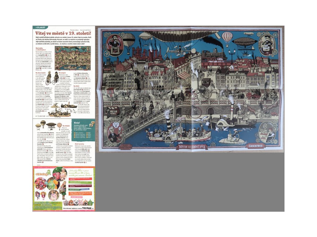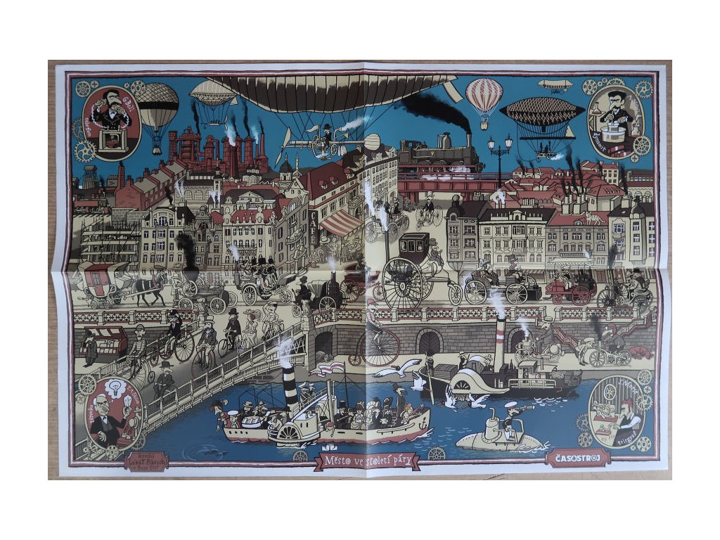 pohled do města v 19. století - plakát je doplněn popisky a vysvětlivkami