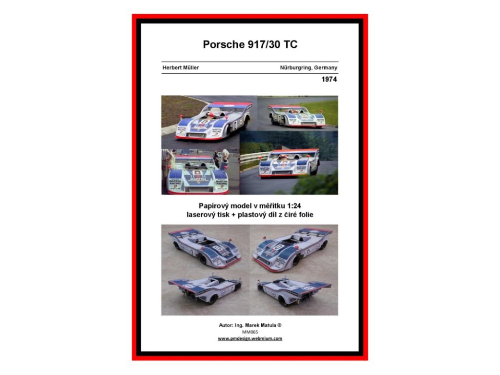 Model vozu Porsche 917/30 TC, který se počátkem 70-tých let účastnil závodů evropské Intersérie a dalších motoristických podniků.