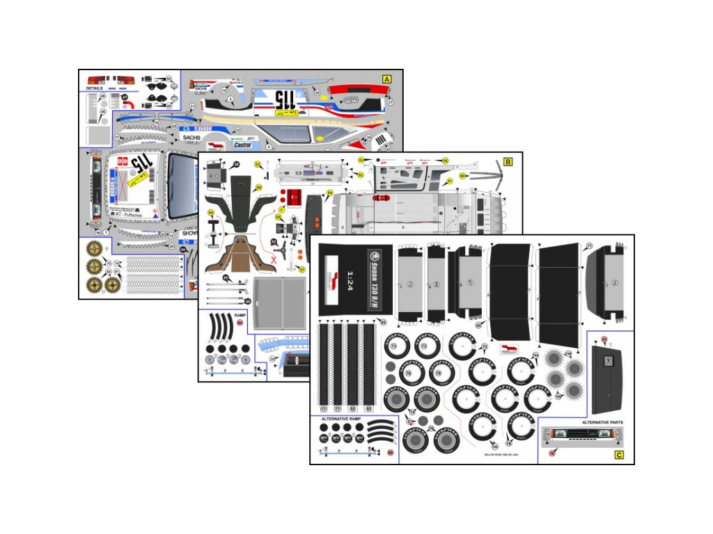 Model lze volitelně sestavit s těmito detaily či funkcemi: interiér kabiny, zatáčecí přední kola.