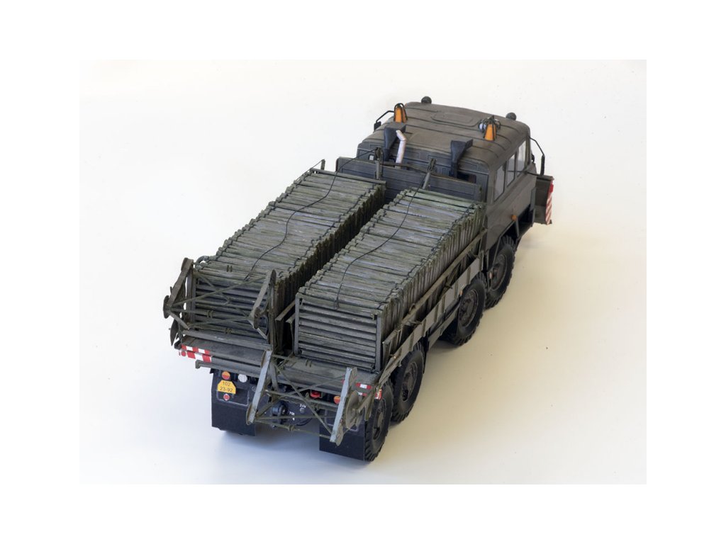 Model lze sestavit s těmito detaily či funkcemi: možnost interiéru kabiny, funkční zatáčení předních náprav, detailní provedení podvozku, funkční tažné zařízení, sklopná kabina, detaily motoru.