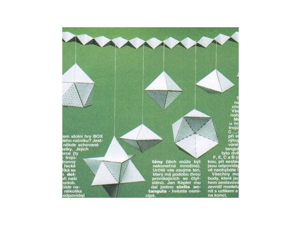 konvexní 4istěn, 6istěn, 8istěn, 10istěn, 12istěn, 16istěn, 20istěn; nekonvexní 20istěn, 24istěn - stella octangula; vánoční řetěz
